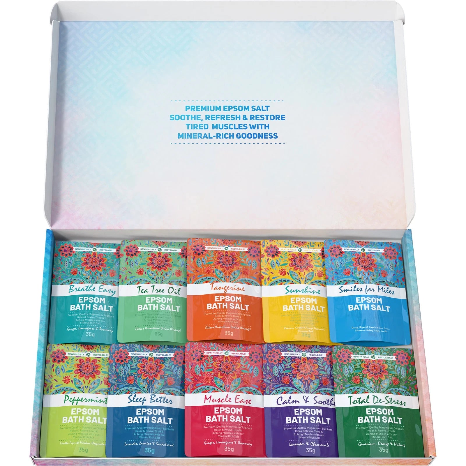 Luxury Natural Epsom Bath Salt Set – 10 Fragrance Packs
